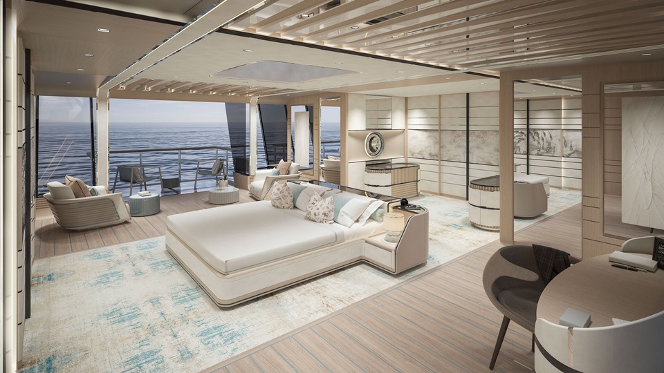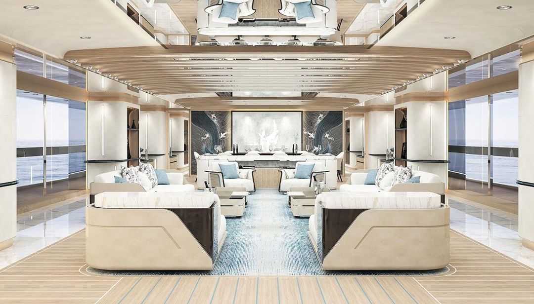 The design is fully customisable. The yacht can accommodate for a total of 14 guests in seven staterooms, with the master forward of the main deck alongside two VIPs with floor to ceiling windows.